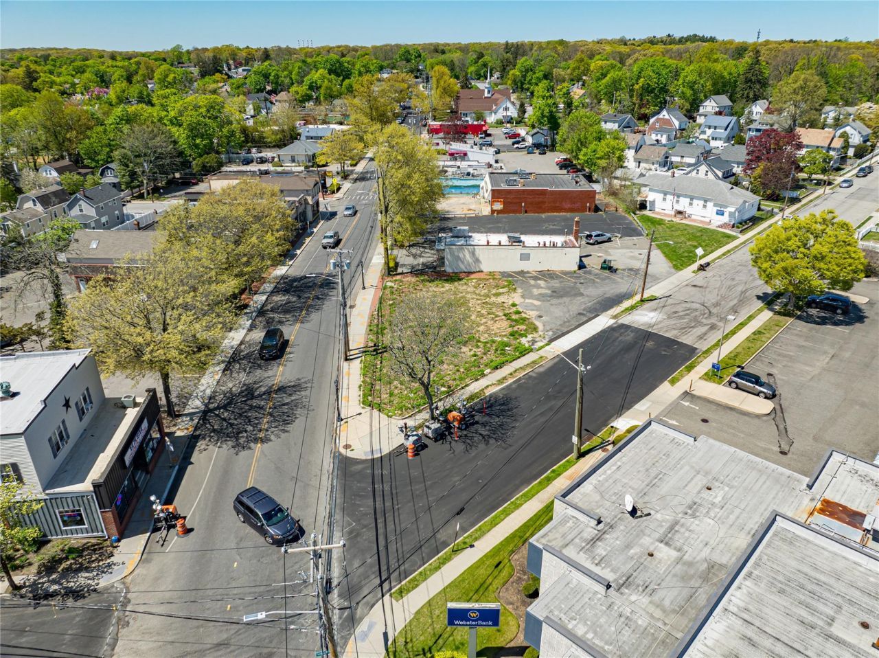 Property consists of 2 areas spot for building and seperate parking lot along side of laundromat for parking located on Main street .