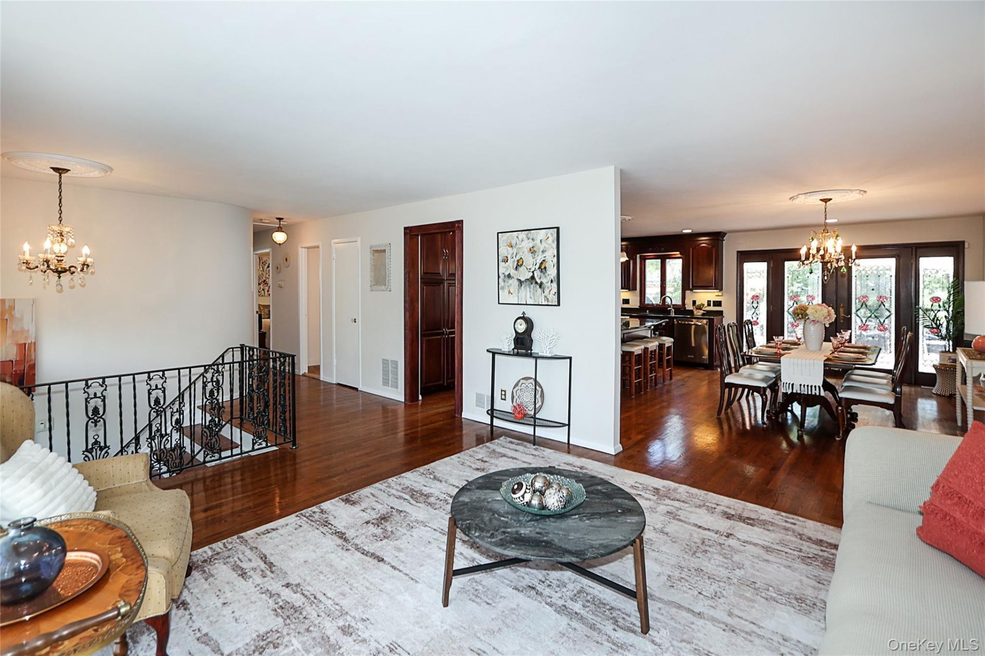 Not your typical hi-ranch! This expansive 3,300 sq. ft. home offers a unique layout with a ground level private primary suite, accessory space with endless potential and incredible flexibility for today's lifestyle. The upper level features a sunlit living room, dining area, updated open kitchen, three bedrooms, and a full bath - perfect for everyday living and entertaining. The dining area features beautiful french doors that open to the extra large updated Trex deck. The kitchen has an extra large island, granite countertops, stainless steel appliances and 2 wall ovens. The lower level offers a spacious den, additional bedroom, office nook, and private expanded primary suite tucked away at the rear of the home, complete with an extra large renovated full bathroom - ideal setup for extended living, guests, or added privacy. The ground level primary bedroom also offers french doors to access the private sunken patio. Ample storage throughout the home includes numerous closets, as well as a full attic with pull-down stairs and two outdoor storage sheds.In addition to all of this space, a separate accessory space with its own ground-level entrance and half bath provides even more flexibility for a home office, studio, or potential income producing or multi-generational setup (with proper permits).Step outside to a backyard retreat featuring an in-ground gunite pool, sunken patio, and generous outdoor space, complete with mature trees for added privacy. Owned solar panels provide added energy efficiency and long-term savings. A rare opportunity to own a home of this size and flexibility in Kings Park!